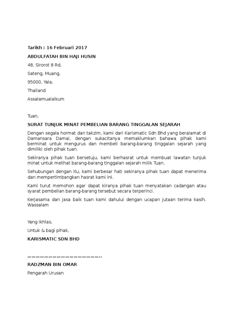 Contoh Surat Rasmi Tunjuk Minat Otosection